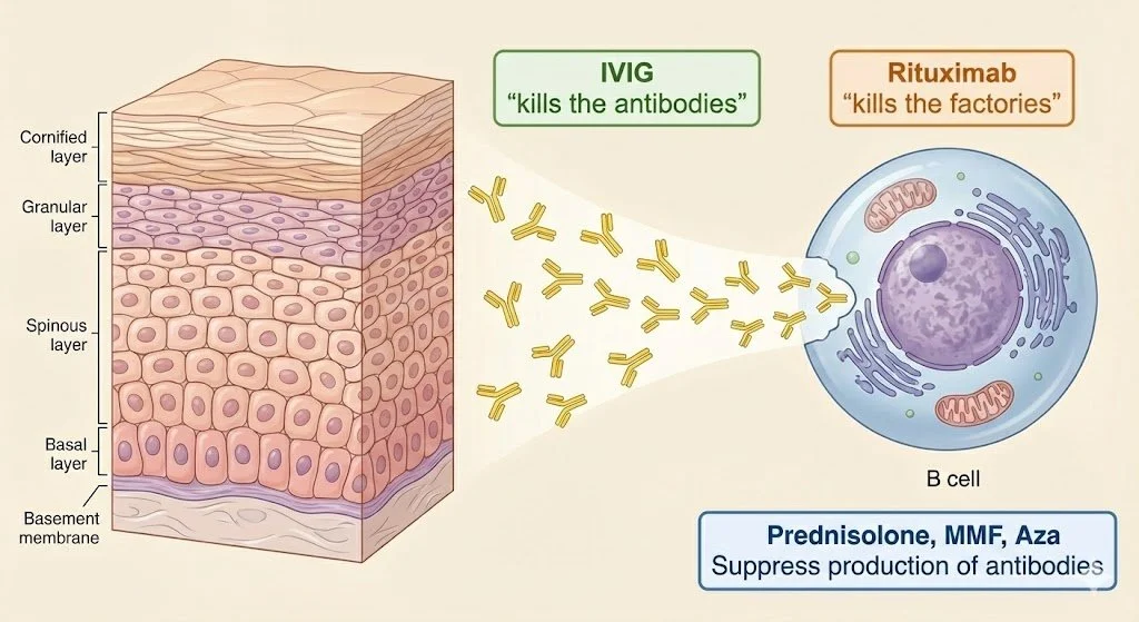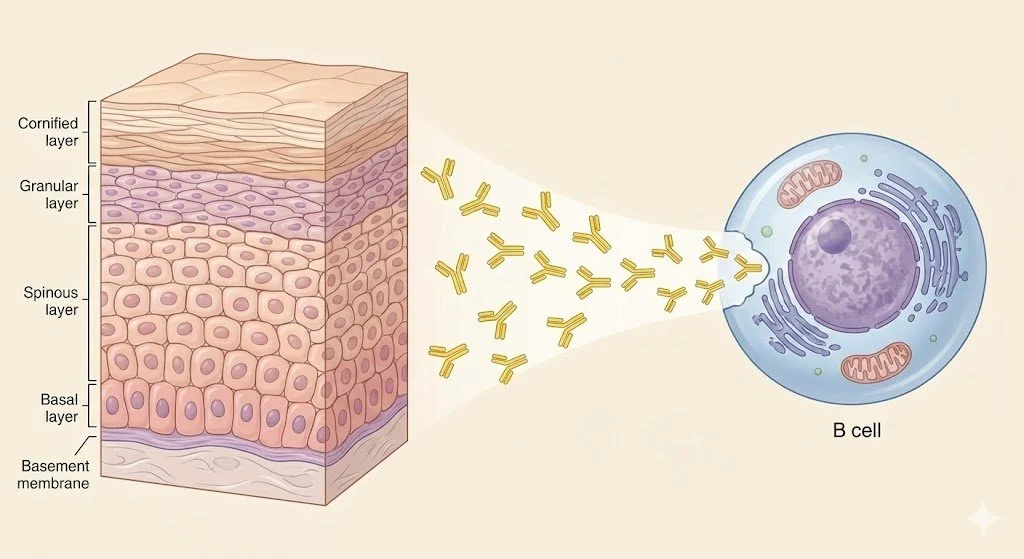 Antibodies bind to keratinocytes