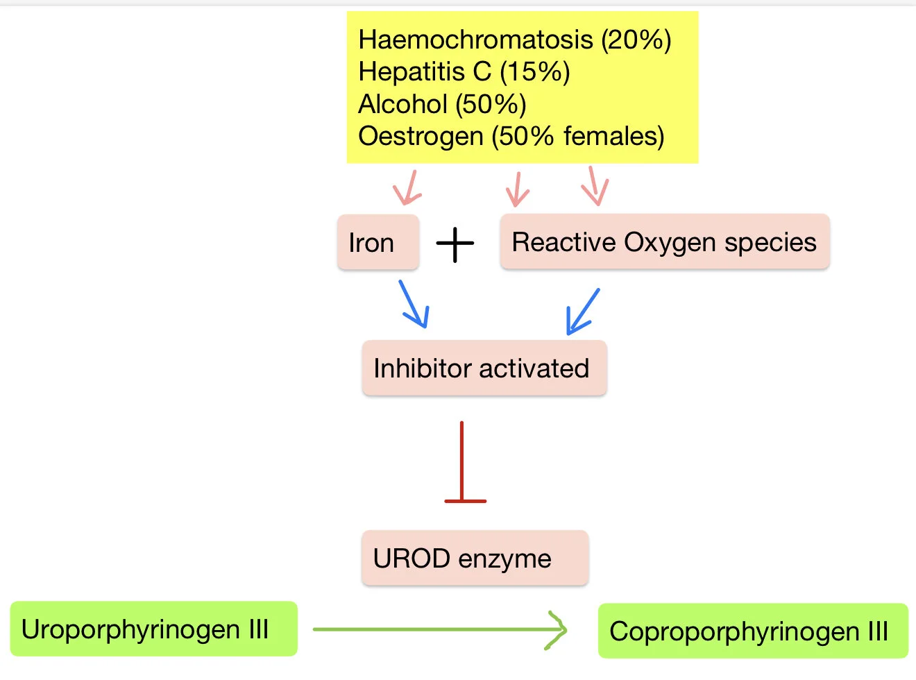 So in summary, inhibition of UROD leads to a build up of uroporphyrinogen III
