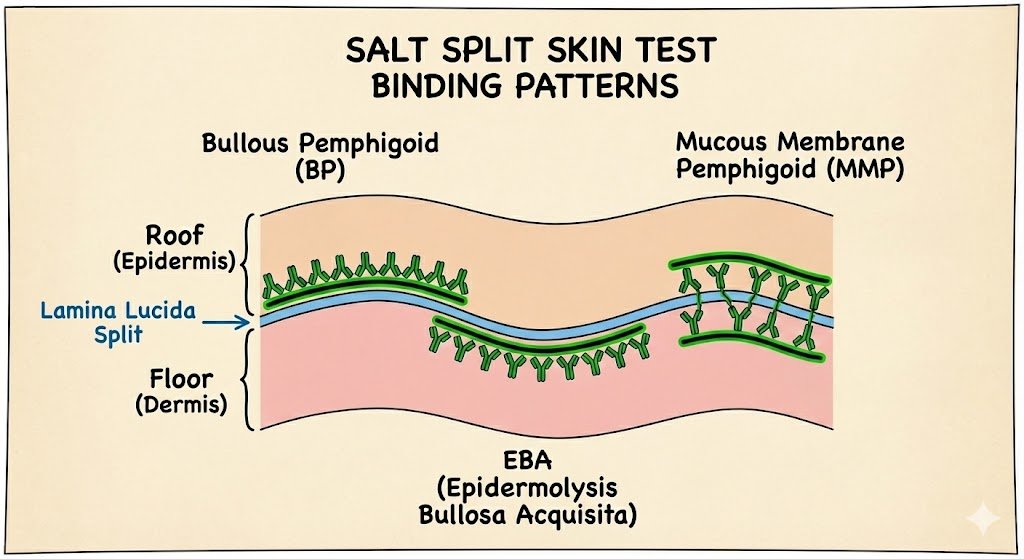 The biopsy is incubated in 1mol/L salt, which causes a split at the lamina lucida (the 'loose lucida').