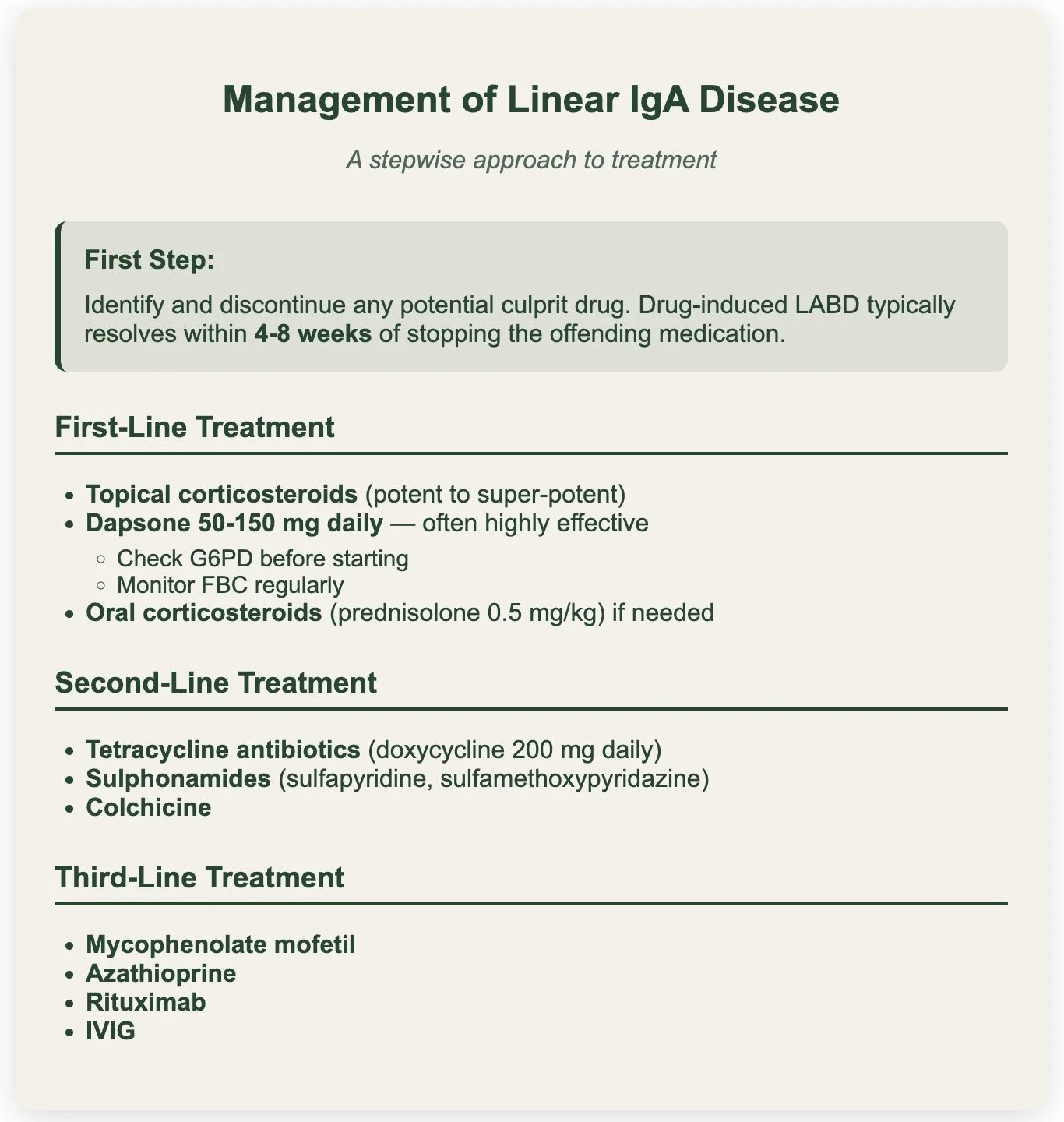 Withdraw offending agent (usually goes away in weeks but cn persist)