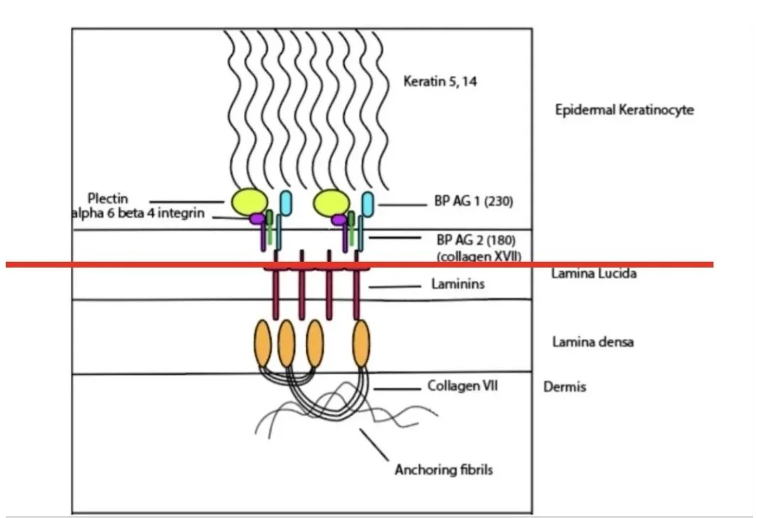 Antibodies bind linearly to the dermo-epidermal junction (DEJ)